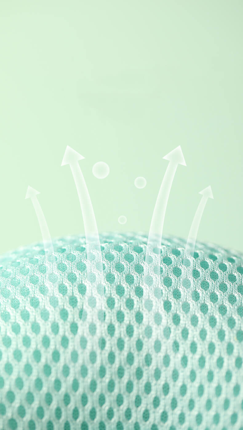 Ytan består av Tencel 3D Mesh och Crystal Mocka som andas, så att barnet inte blir varmt även vid längre användning.